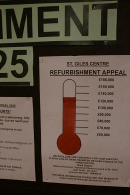 At our PCC meeting held on Monday 13th October 2023 the PCC decided to suspend our charitable giving, with the exception ofChristian Aid. The reason for this is to prioritise fundraising toward refurbishing the St. Giles Centre.