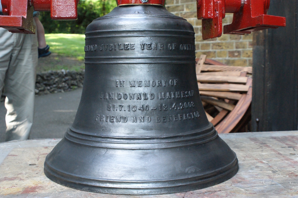 Five of the original six bells were obtained following the cancellation of an order by another church. The sixth (the 2nd) was newly cast, an event which was witnessed and enjoyed by many parish members, see Foundry VisitAll of the bells have their date of casting and John Taylor’s name inscribed on them, the third also has the special message 'ring out wild bell'.