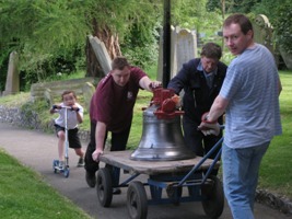 The bells were delivered by one of two Paul Masons from John Taylor (D Paul Mason) on Wednesday 30th May 2012, and it was going to be a race against time to get the bells ringable for the Jubilee weekend. With the combined efforts of both Paul Masons and helpers on Thursday 31st May and after a considerable amount of hard work, the bells were deemed ringable, albeit the installation was not finished as the bells had no stays or sliders.Prior to the installation being finished off we had a weekday wedding for which experienced ringers were imported, and the consensus was that the bells were indeed excellent. One of those ringers is in charge of ringing at Westminster Abbey so his opinion was very valuable.