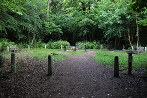 The Lubbock family burial ground is situated in the woods about 100 metres from St. Giles church in the centre of the wide path leading down toward High Elms.